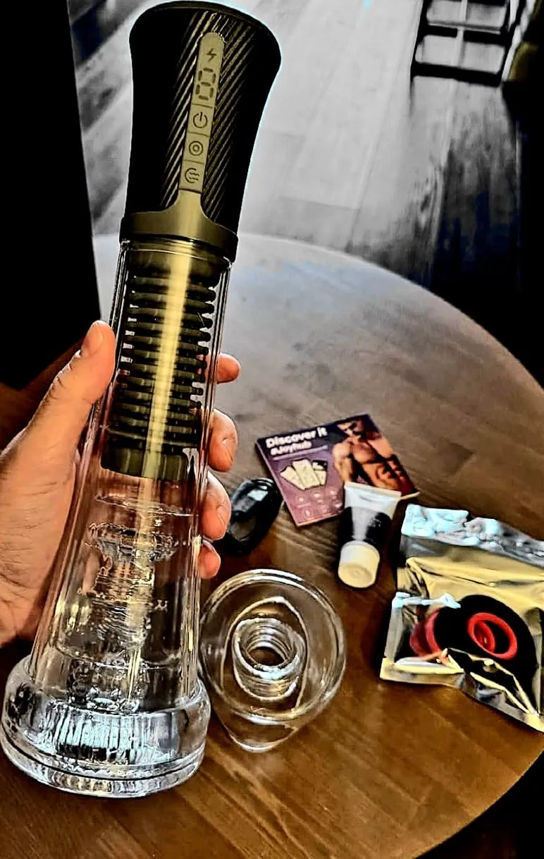 The sensation when my shaft fills the entire cylinder is wild. You can literally see your size increasing through the transparent chamber.